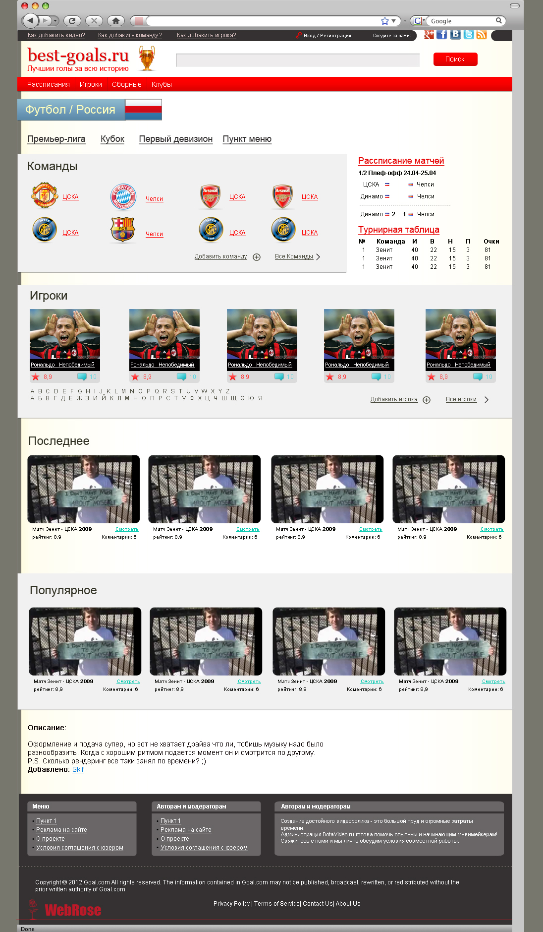Дизайн видео-портала «Лучшие голы» Design of a video portal «Best Goals»